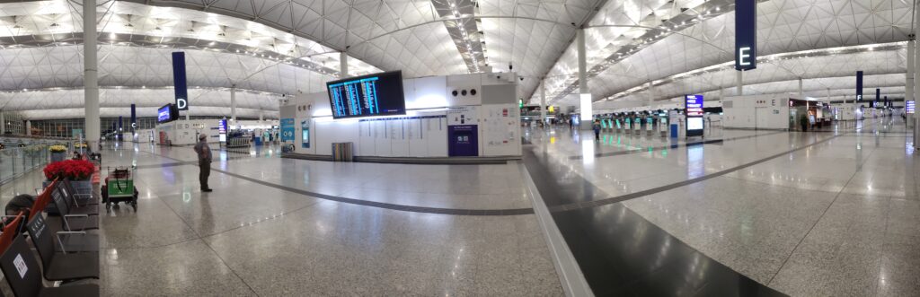 由於機場沒有登機証明都進入不到,和有一些地方都停飛了,加上現在是早上5時多,機場空空如也,但記憶中就算平常早上機場都沒有這麼少人,應該係covid的關係。