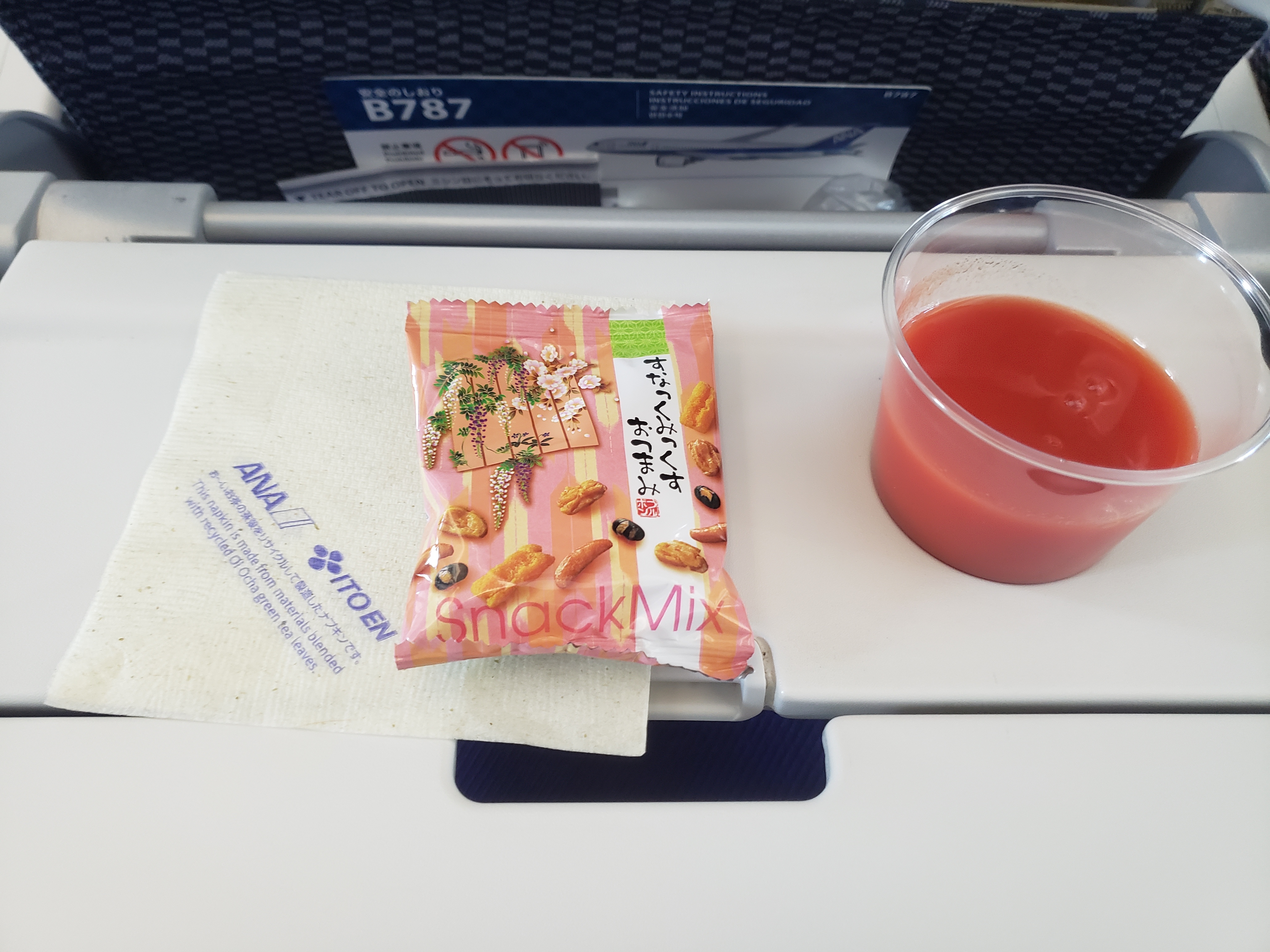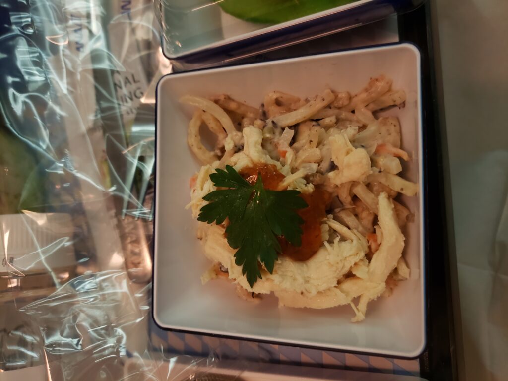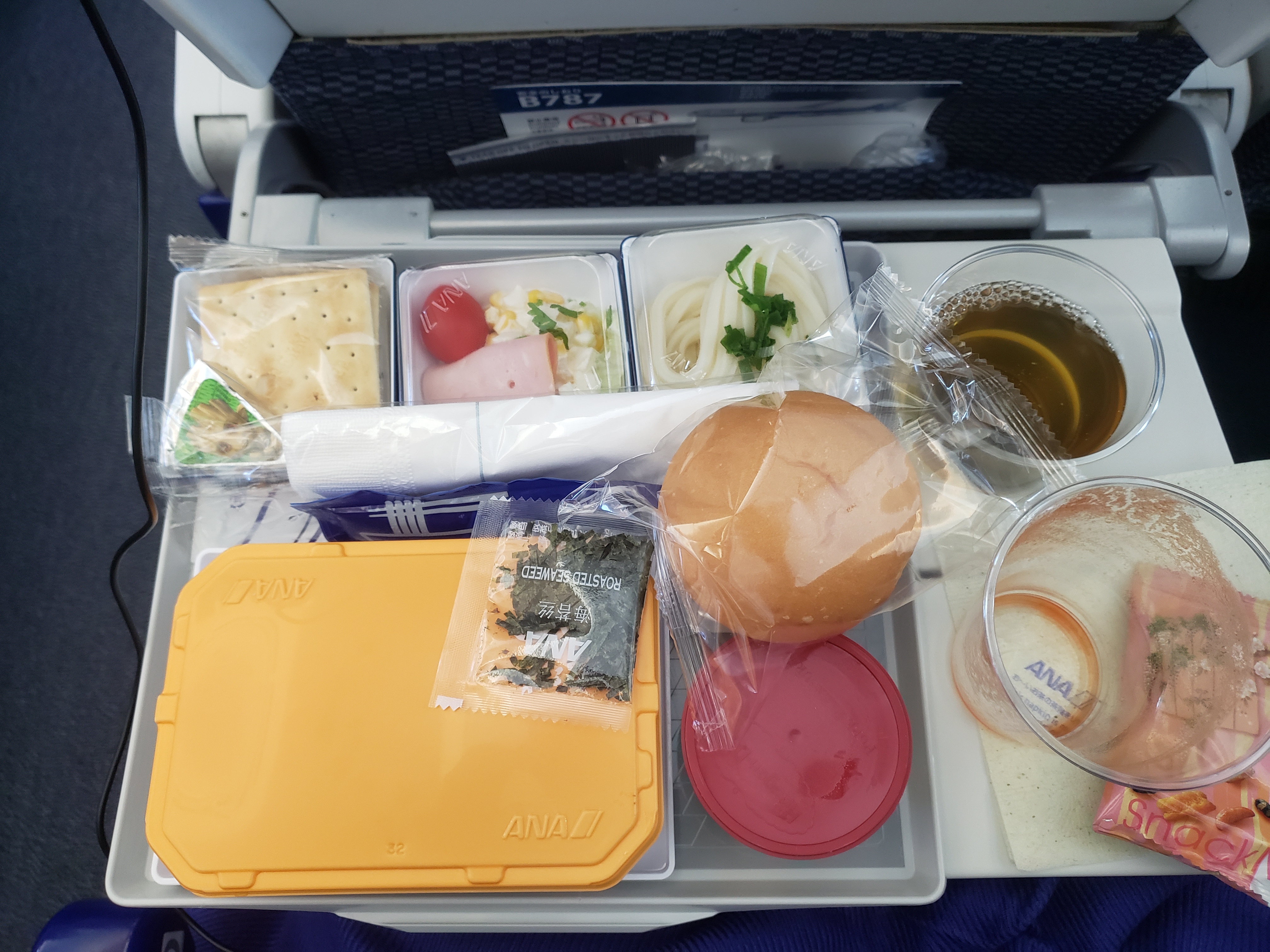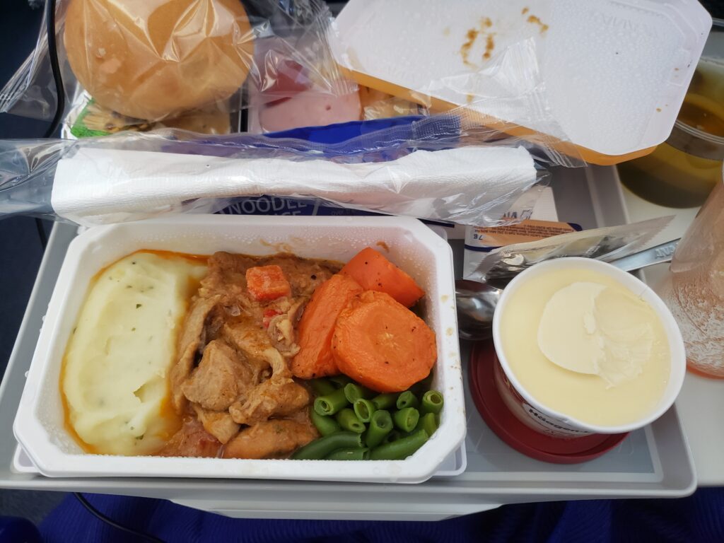 下面是第二程飛機的飛機餐,由於飛13小時,所以有兩餐,一餐晚餐和早餐,和小食。上機約一小時後排發第一餐,約日本時間5時30分,即是香港的4時30分,有一些早,但ANA的飛機餐很豐富。