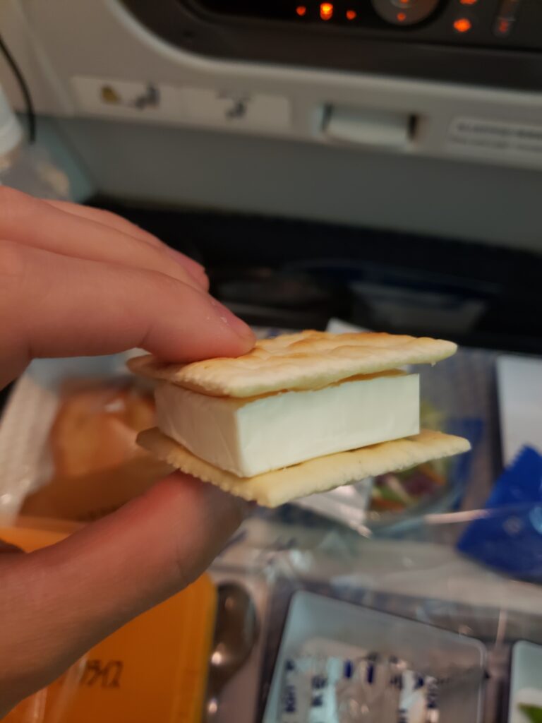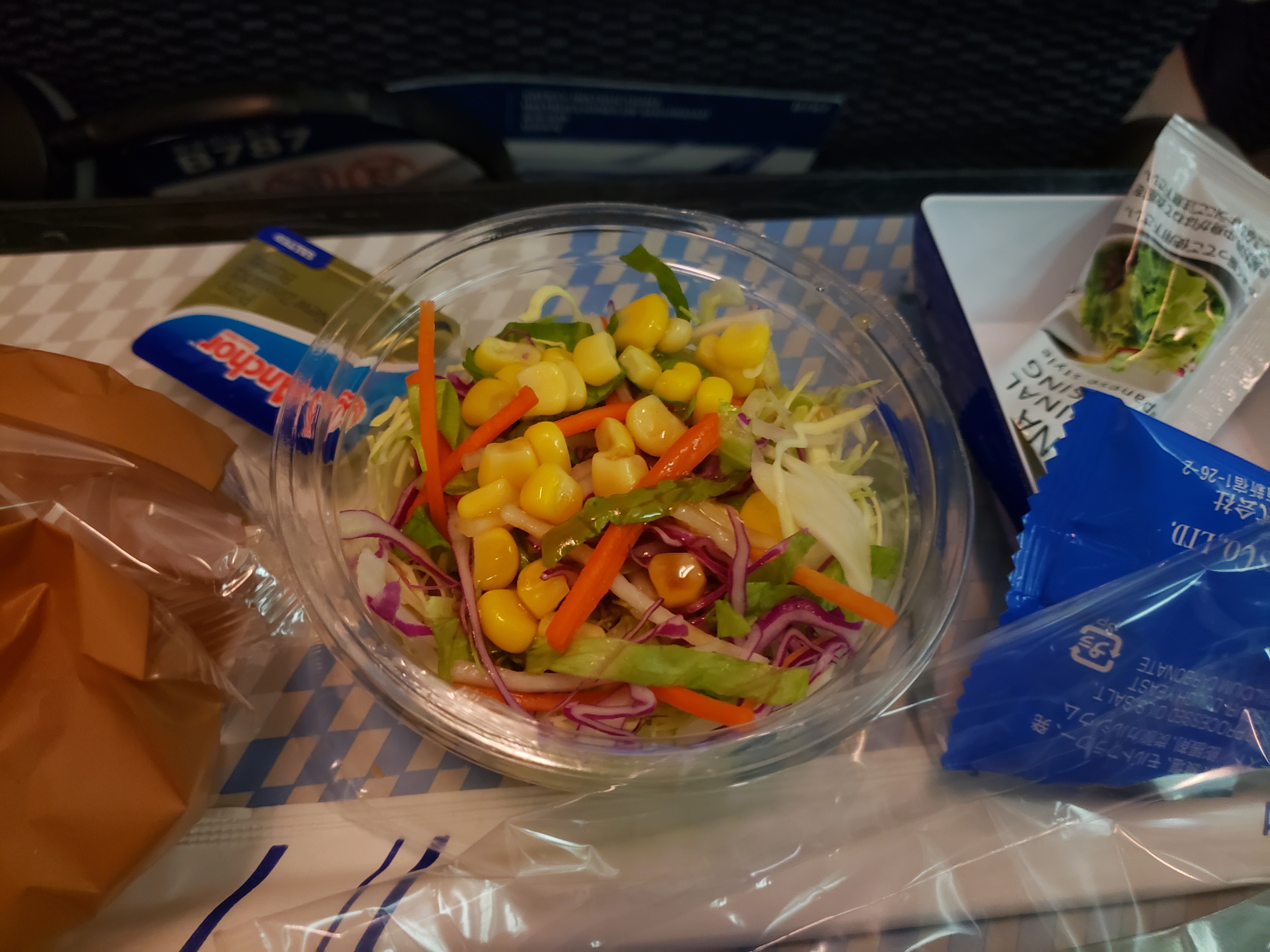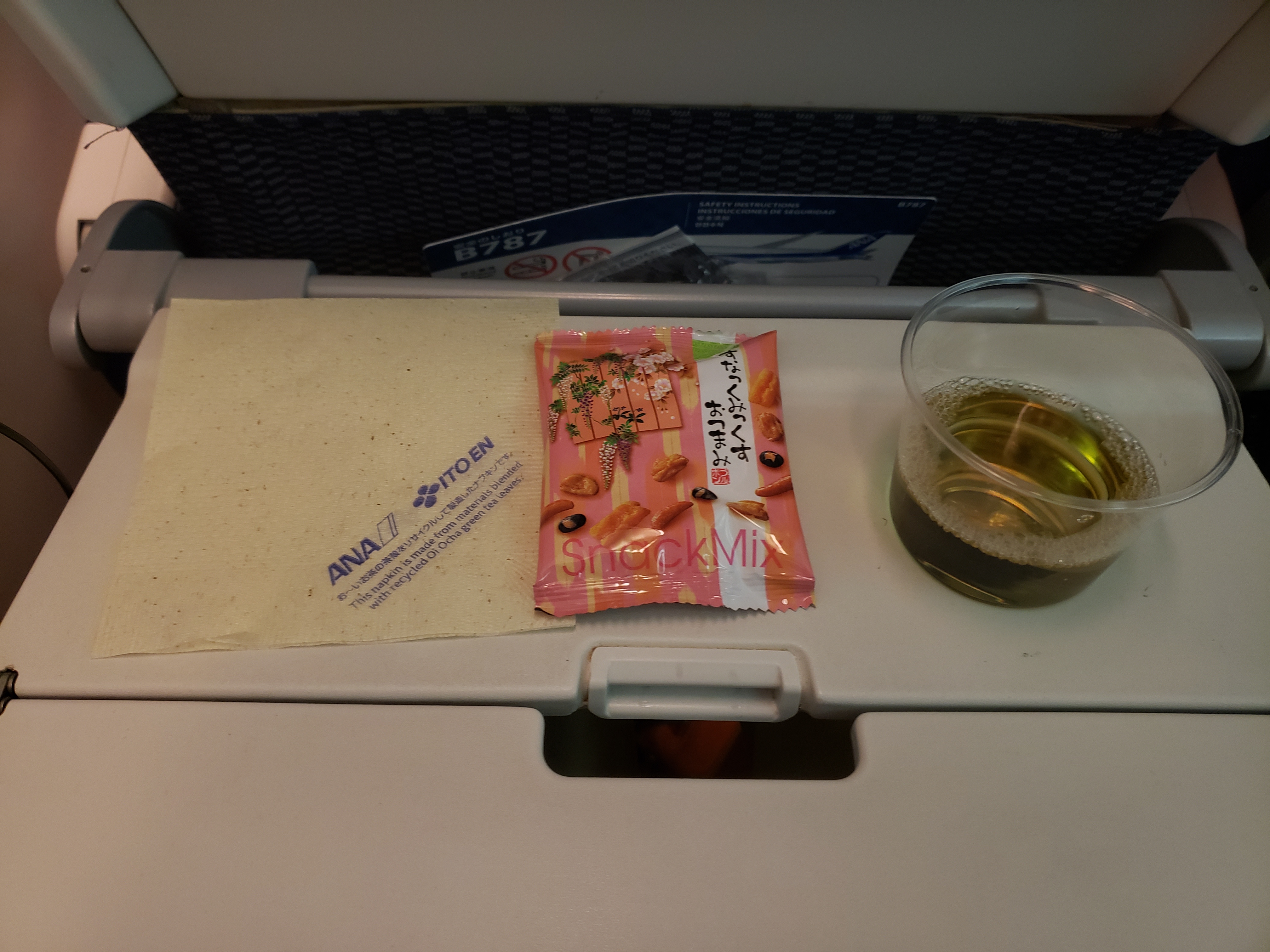 下面是第二程飛機的飛機餐,由於飛13小時,所以有兩餐,一餐晚餐和早餐,和小食。上機約一小時後排發第一餐,約日本時間5時30分,即是香港的4時30分,有一些早,但ANA的飛機餐很豐富。