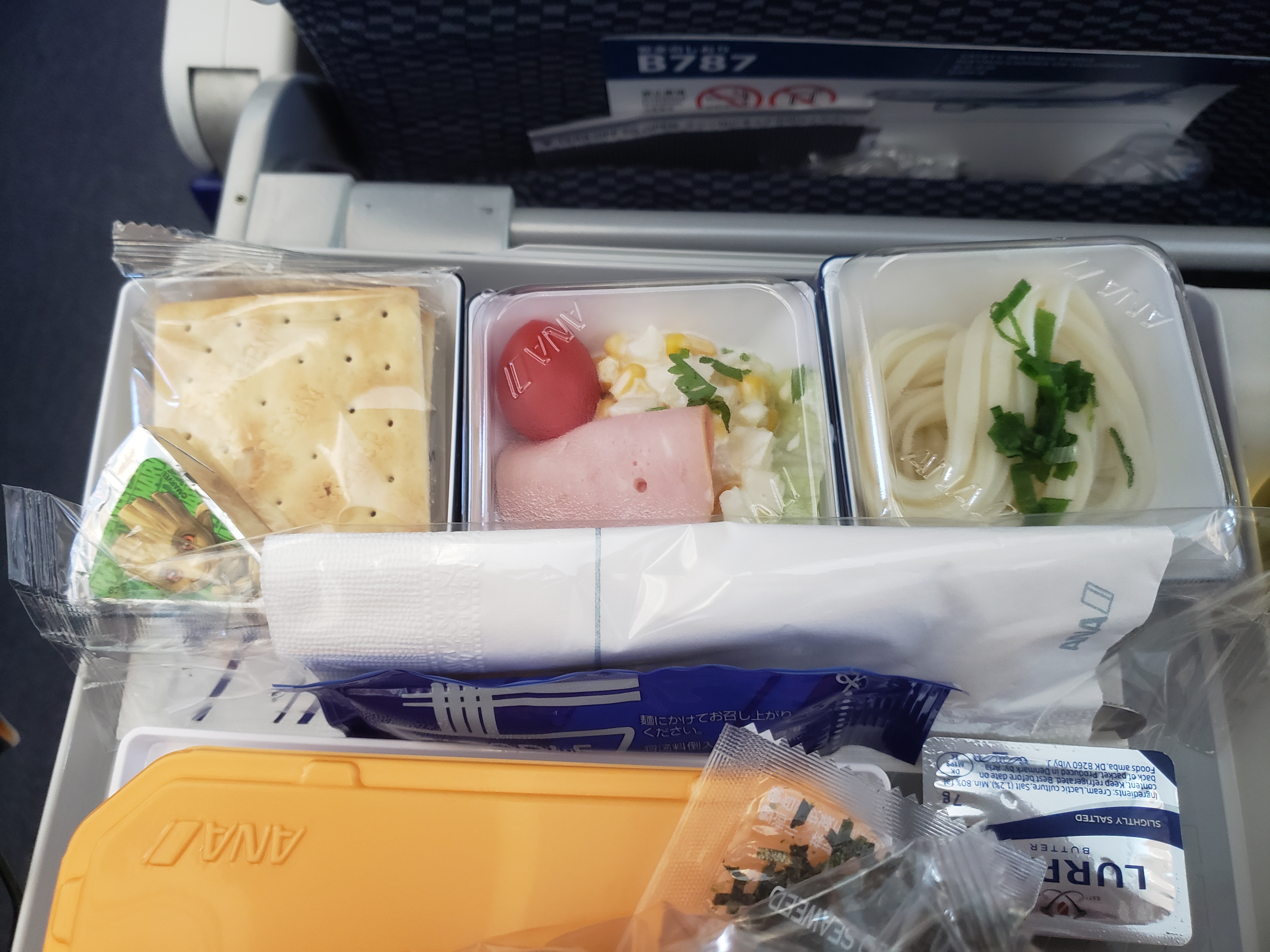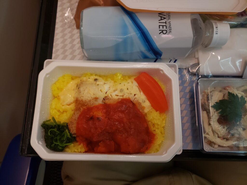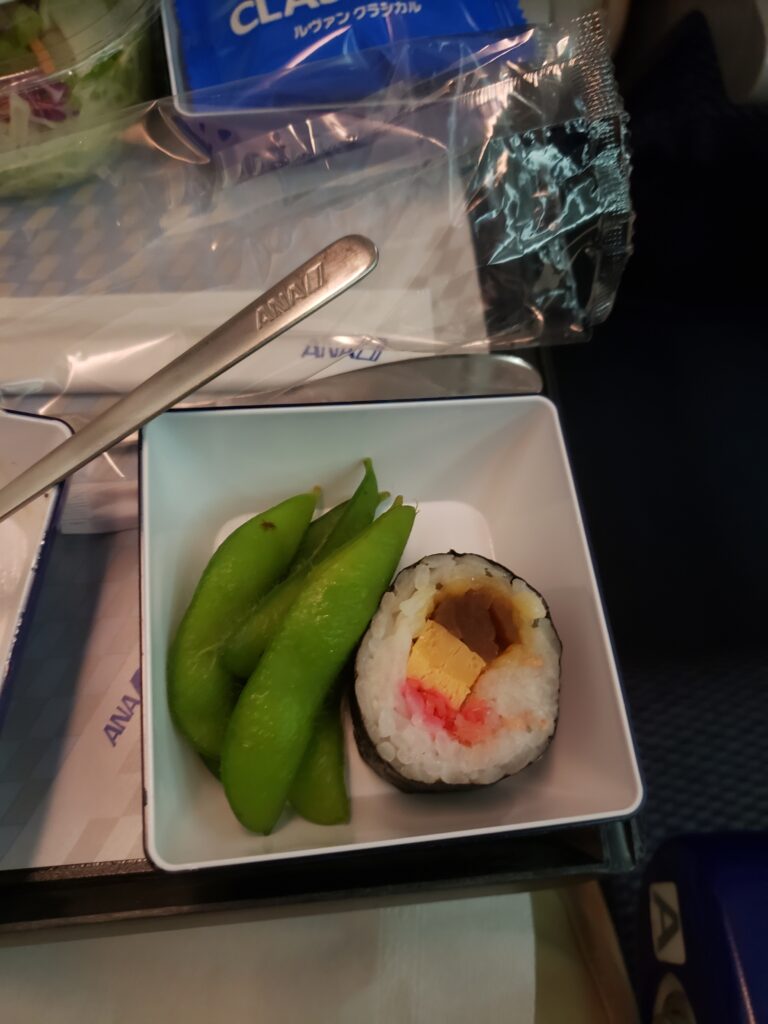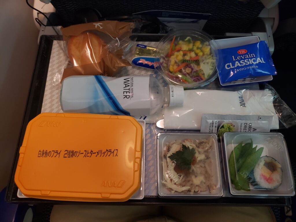 第一程機,將會先飛去東京轉機,約四小時。下面是第一程飛機的飛機餐,ANA的飛機餐都延豐富的。